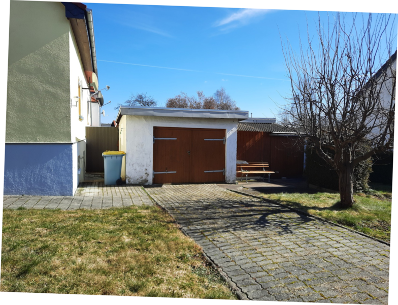 Auf dem gepflegten Grundstück befindet sich eine Garage und ein Schuppen. Die Wegeflächen wurden gepflastert.