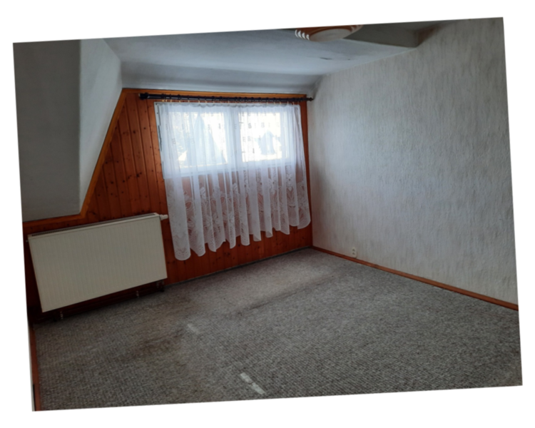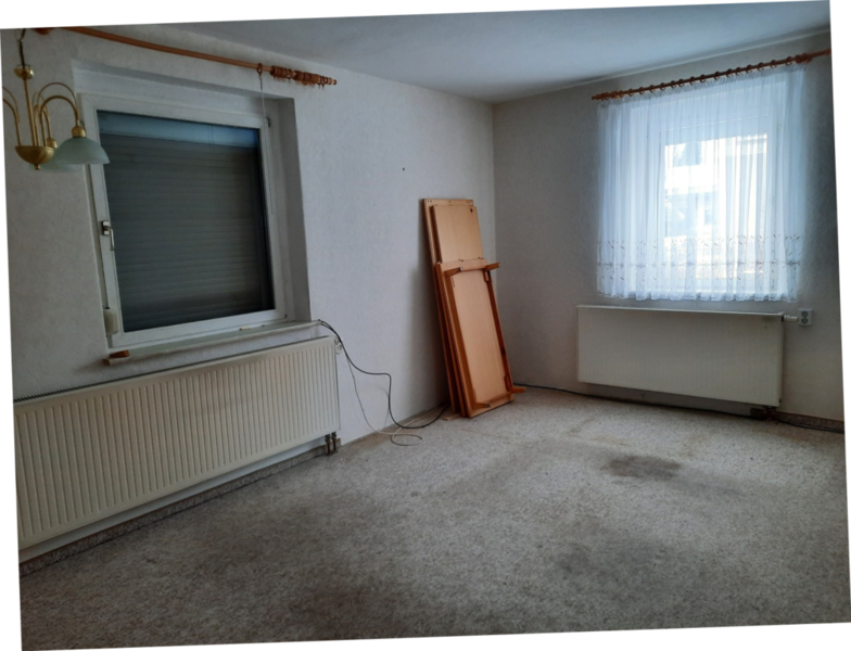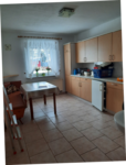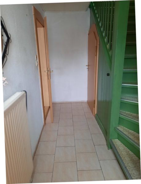 Im Erdgeschoss befinden sich das Wohnzimmer und die Küche. Die Einbauküche kann kostenlos übernommen werden. In der Küche wurde der Fußboden gefliest und ein Fliesenspiegel angebracht.