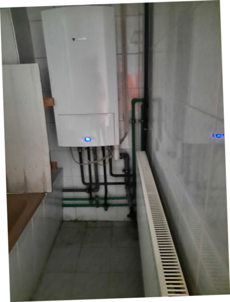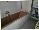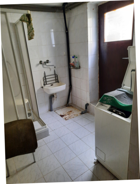 Das Bad wurde im Kellergeschoss eingebaut und mit Wanne, Dusche, Waschbecken und Waschmaschinenanschluss versehen.