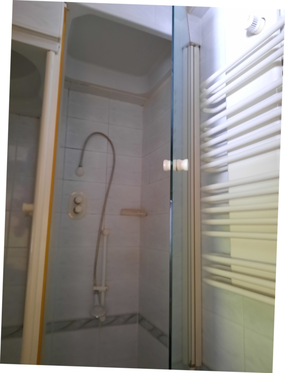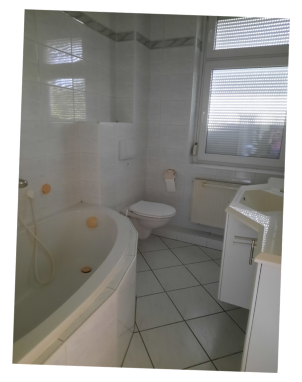 Das Bad ist mit Wanne, Dusche, Waschbecken und Toilette ausgestattet. Fußboden und Wände sind gefliest. Der Waschmaschinenanschluss befindet sich in einem separaten Raum.