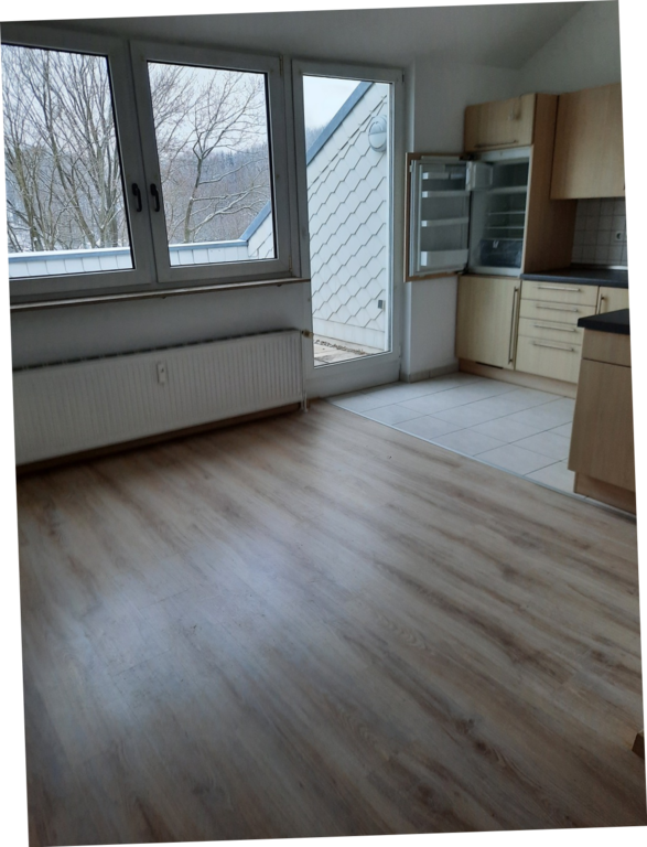 Die sanierte Wohnung besteht aus Wohnzimmer mit offenen Ess- und Küchenbereich, Schlafzimmer, Kinderzimmer und Bad.
