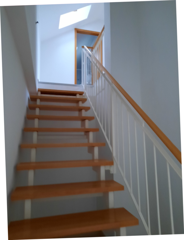 Schlafzimmer, Kinderzimmer und Bad erreicht man über die innliegende Treppe.