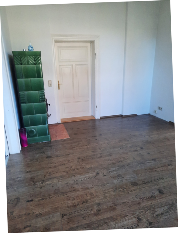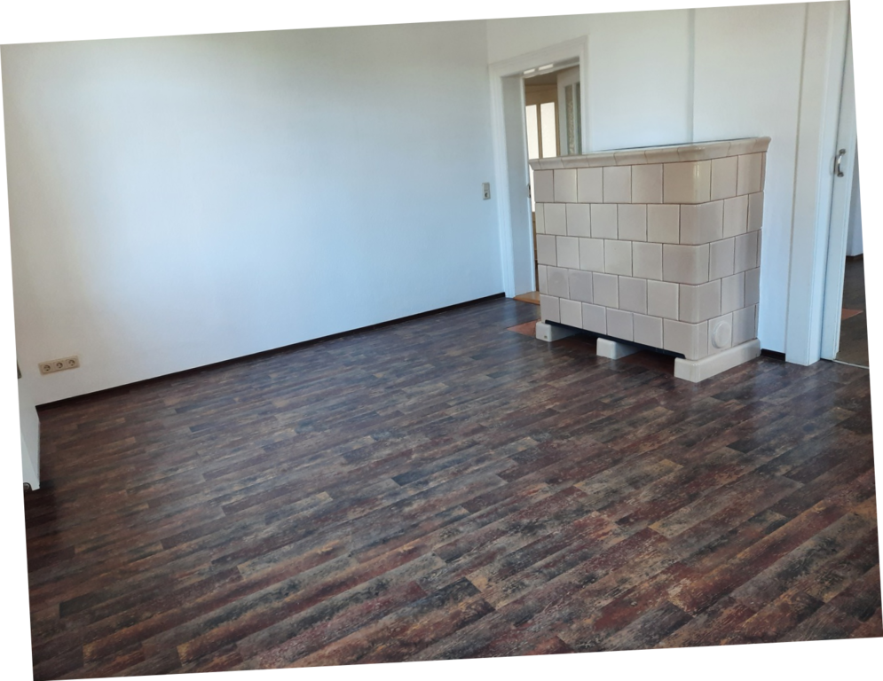 Das Wohnzimmer, das Schlafzimmer und das Esszimmer wurden mit einem Laminatboden ausgestattet. Wohnzimmer und Esszimmer sind mit funktionstüchtigen Kachelöfen versehen.